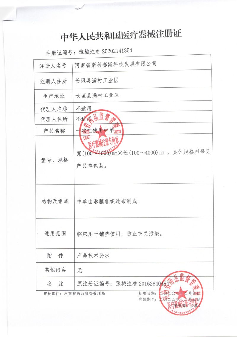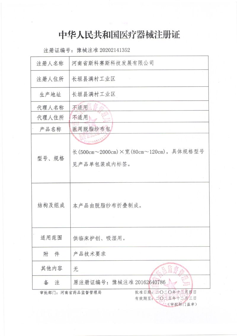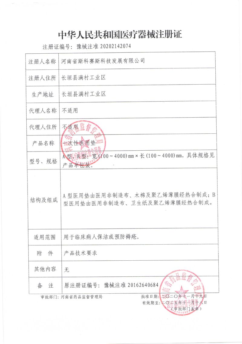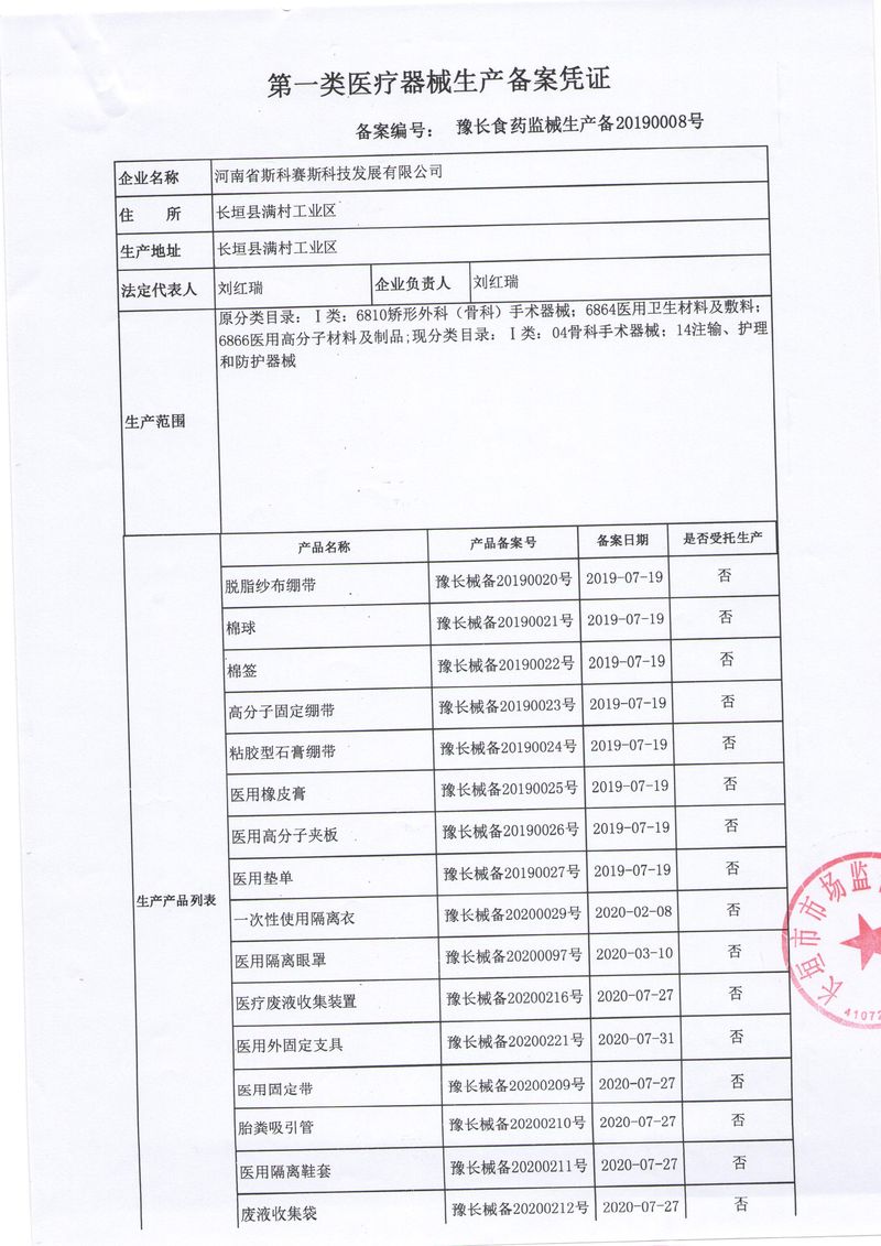 河南省斯科賽斯科技發(fā)展有限公司創(chuàng)建于 2011 年,位于“中國醫(yī)療耗材之都”- 河南省長垣縣,西臨 308 省道,南靠新菏鐵路,北依長濟高速,交通便捷,經(jīng)濟發(fā)達,環(huán)境優(yōu)美。斯科賽斯積極進入醫(yī)療健康和服務領域,秉承為用戶創(chuàng)造價值的理念,專注于醫(yī)用耗材解決方案的研發(fā)和運營,并為用戶提供完善的產(chǎn)品解決方案;  斯科賽斯主要生產(chǎn)醫(yī)用麻醉系列、醫(yī)用高分子系列、醫(yī)用敷料包系列、醫(yī)用無紡布系列、醫(yī)用防護系列、醫(yī)用脫脂棉系列、生物材料制品類等七大類、100 多個品種、400 多個規(guī)格的產(chǎn)品。公司占地面積約 30000 平方米,建筑面積20000 平方米,擁有 10 萬級的凈化車間總面積 10000 平方米。擁有國際先進水平的生產(chǎn)設備和檢測儀器,技術裝備精良,檢測手段完善,為醫(yī)療行業(yè)的不斷發(fā)展進步提供保障。公司順利通過 ISO9001、ISO13485 質量管理體系認證。  斯科賽斯堅持研發(fā)高科技新產(chǎn)品,力爭在醫(yī)療器械關鍵領域取得技術和研發(fā)的重大突破;立足國內和國際兩個市場,逐步實現(xiàn)管理理念、經(jīng)營機制、人力資源、技術、產(chǎn)品、市場等全方位對接,提高企業(yè)的核心競爭力;過去的歲月里,斯科賽斯砥礪前行,誠信務實,銳意進取,不斷創(chuàng)新,用自己的睿智和辛勞,以富有責任感的使命,在探索中追求,在追求中超越,致力于成為值得信賴的醫(yī)療用品生產(chǎn)企業(yè)!在未來的日子里,斯科賽斯將一如既往豪情滿懷,信心百倍,攜手并肩,執(zhí)著追求,向更高的的目標前進,鑄造新的輝煌!
